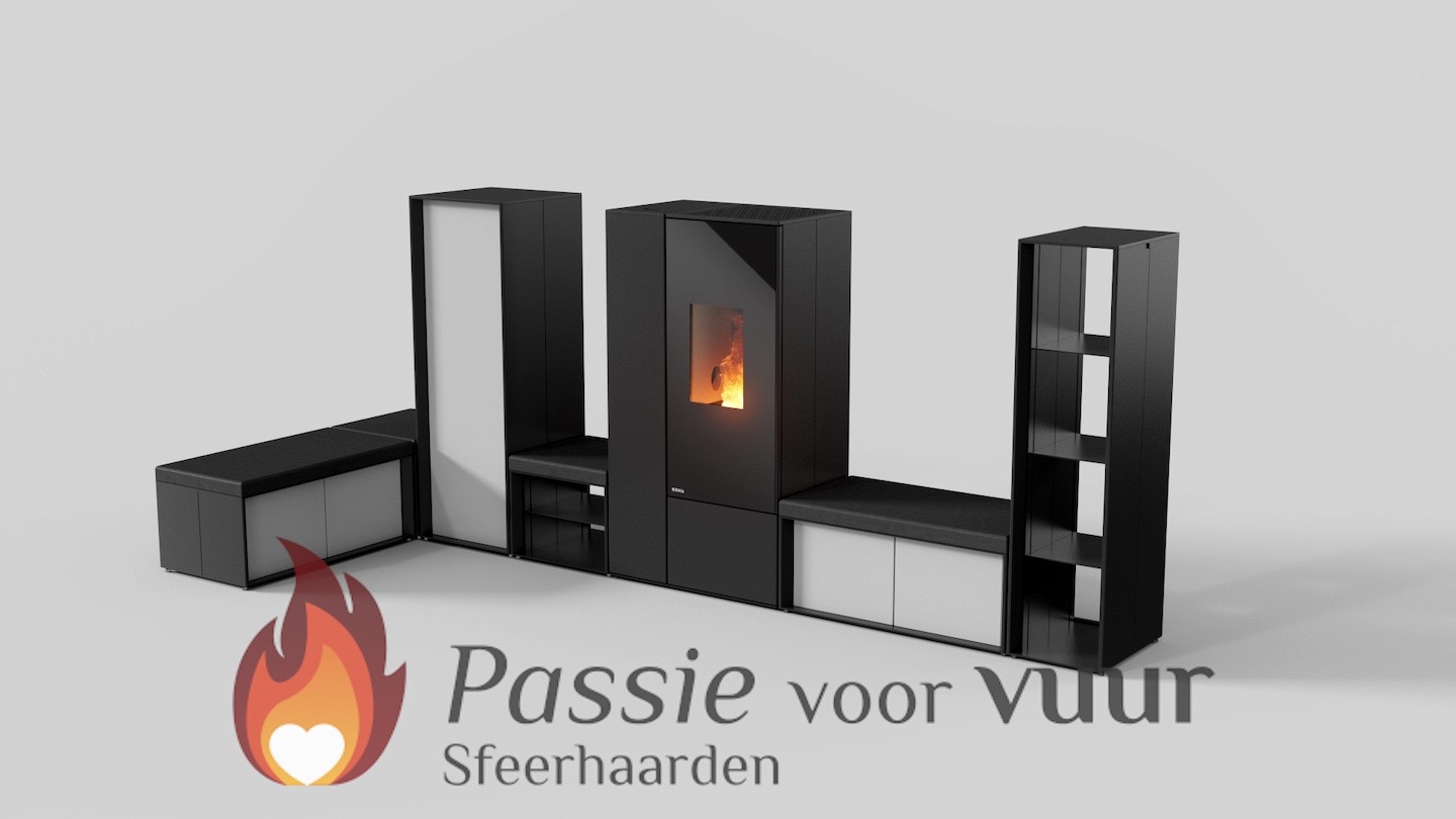 De kachel heeft een zwarte mantel, keuze uit een reservoir van 22kg of 38kg en uit te breiden met diverse accessoires. Hier kunt u uw kachel zelf samen stellen.