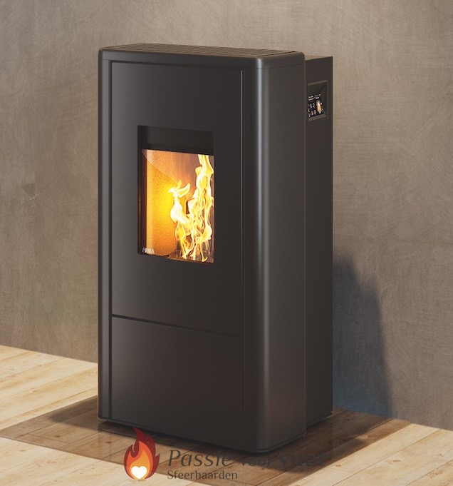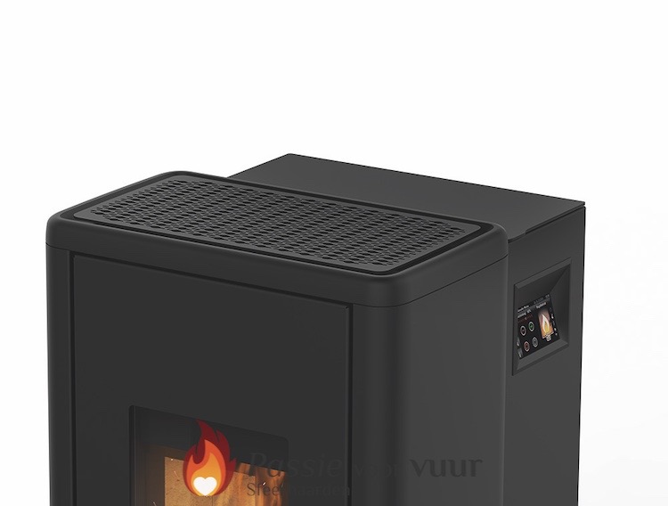 De kachel is beschikbaar in een zwarte stalen mantel en heeft een pelletreservoir van 20kg. Hier kunt u de kachel zelf samenstellen.